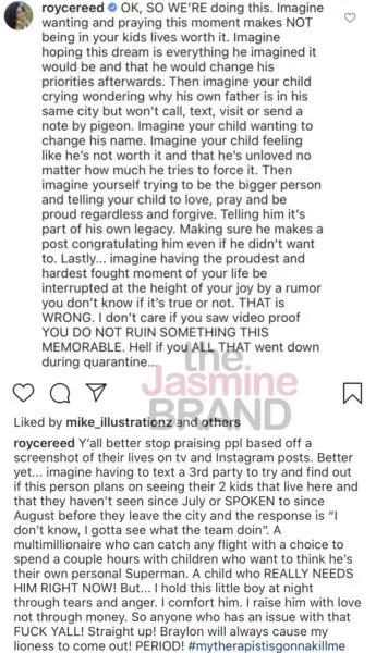 What was meant to be a celebratory moment, turned into a moment of venting for former “Basketball Wives” member Royce Reed, who has a son with Dwight Howard. She posted several cryptic messages that were telling enough to point directly at her son’s father.