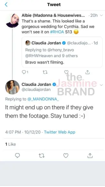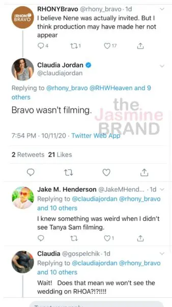 Claudia Jordan was in attendance and provided a few details to her Twitter followers, letting them know that Bravo wasn’t there to film Cynthia Bailey’s big day.