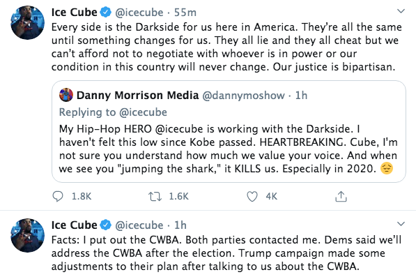 Ice Cube has yet to react to the news. His latest tweet was in reference to the #EndSars movement.