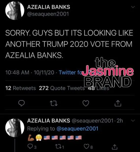 SORRY. GUYS BUT ITS LOOKING LIKE ANOTHER TRUMP 2020 VOTE FROM AZELIA BANKS.