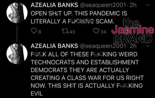 Azelia Banks Suspended From Twitter For Posting Transphobic Messages + She Says Pandemic Is A Scam
