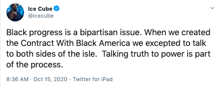 “Black progress is a bipartisan issue. When we created the Contract With Black America we excepted to talk to both sides of the isle. Talking truth to power is part of the process.”