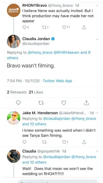 Even still, the money allegedly requested wouldn’t have applied considering former RHOA member Claudia Jordan confirming that BRAVO cameras were not filming the wedding anyway.