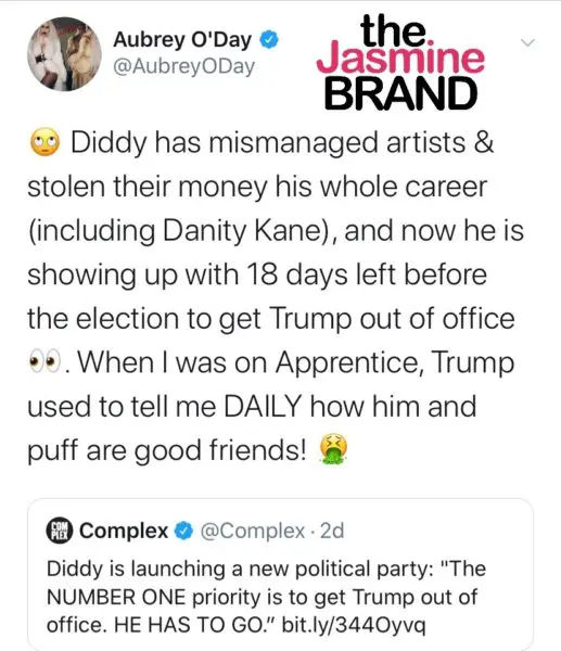 Aubrey O’Day Questions Diddy Trying To Get Trump Out Of Office: You Mismanaged Artists & Stole Money Your Whole Career!