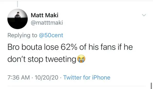 In the end, 50 Cent did respond via Twitter and Instagram, not missing the chance to promote his own show: saying: