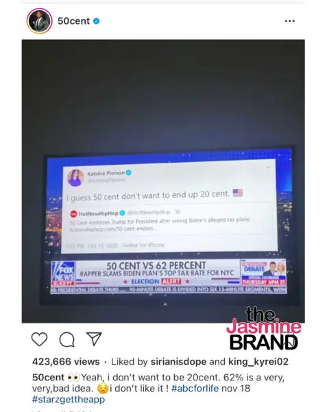 Rapper 50 Cent Seemingly Endorses Trump For President In Instagram Post “I Don’t Care Trump Doesn’t Like Black People”