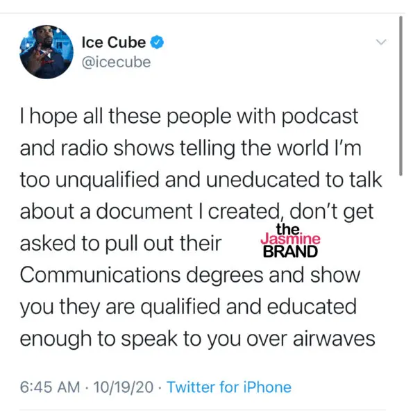 “It’s a fantasy to believe you can get this administration to do anything. You’ve seen black person after black person after black person ruin themself under the altar of Trump with nothing in return and Ice Cube is the latest one.”