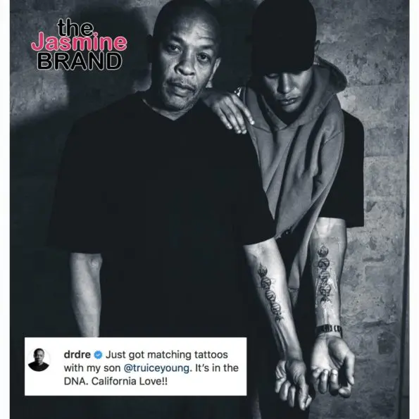 Dr. Dre Debuts New Matching Tattoos With His Son Truice:”It’s In The DNA. California Love.”
