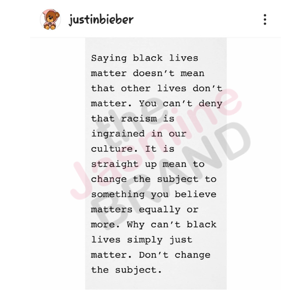 Justin Bieber Says “Don’t Change The Subject” As He Continues To Support Black Lives Matter: You Can’t Deny That Racism Is Ingrained In Our Culture