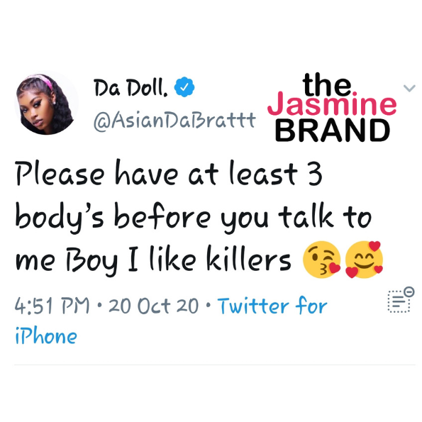 Rapper Asian Doll is not here for the criticism regarding a tweet she posted this week that mentioned one of her requirements to date her. In the tweet, Asian Doll (who is also known as Asian Da Brat) said: