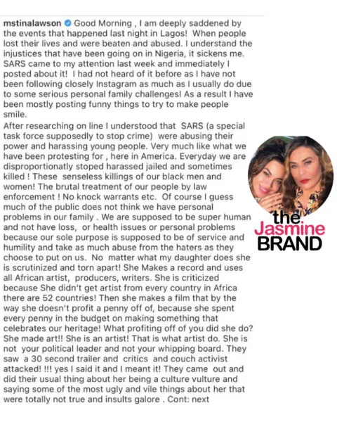 Last week, (Oct. 21) Beyonce was one of the latest celebrities to post a message in support of #Endsars in Nigeria. Her post came days aafter popular Afrobeats artist Tiwa Savage who was recently apart of Beyonce‘s video and music project for Disney’s “Black Is King,” specifically requested for Beyonce to use her voice and platform to support the cause.