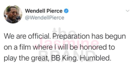 “We are official. Preparation has begun on a film where I will be honored to play the great, BB King. Humbled.”