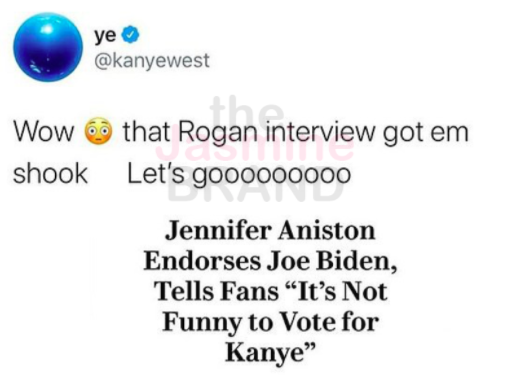 Jennifer Aniston recently endorsed Joe Biden and urged fans not to support Kanye West’s campaign for president. She said: