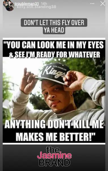 T.I. hasn’t directly responded, however he did post a cryptic message in his stories.