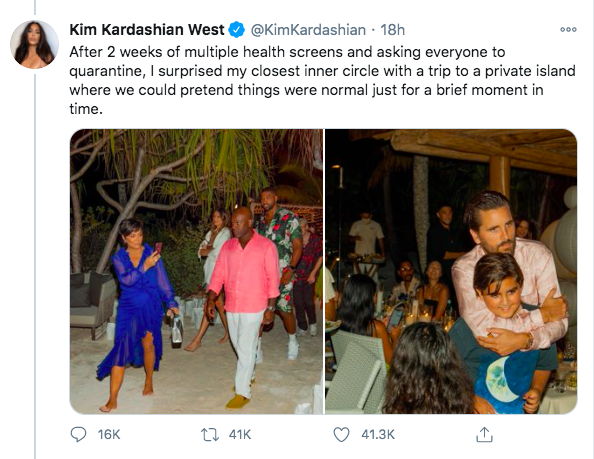 Many were confused as to why Kim Kardashian would share the news of her getaway celebration while the world is facing a pandemic. It wasn’t long until people were calling Kim tone-deaf. Some even accused the socialite of bragging about her luxury birthday event during a time and most people were just simply trying to survive.