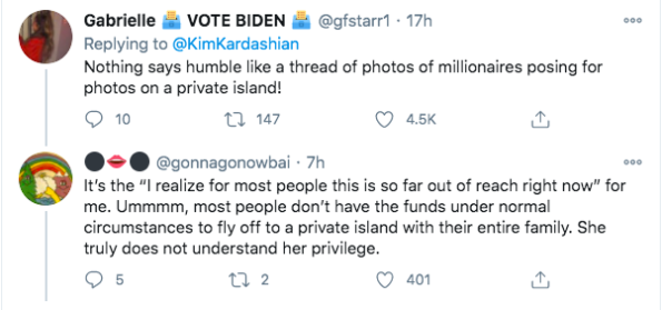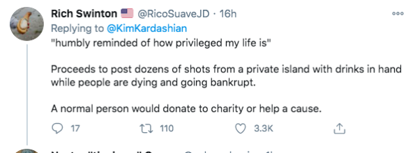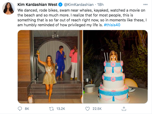 Kim Kardashian also shared that her private island birthday event reminded her of how privileged she truly is. She tweeted,