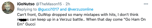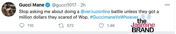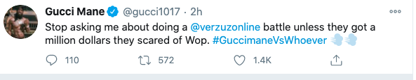 Stop asking me about doing a @verzuzonline battle unless they got a million dollars they scared of Wop. #GucciemanVsWhoever
