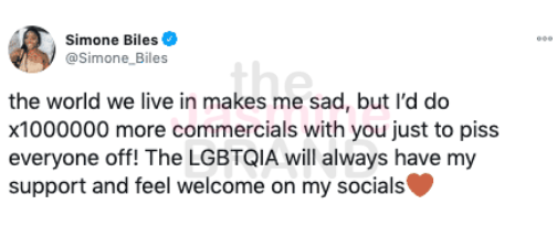 Simone Biles is standing by her Uber Eats commercial with Queer Eye star Jonathan Va Ness, despite backlash she received from a conservative group.