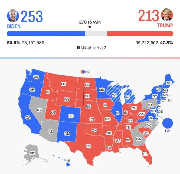 The Presidential race during this election has been close, but also, unlike anything America has seen. As the country waits to see which candidate will grab the total 270 electoral votes required to win the election, Joe Biden has remained in the lead. The election has stretched two days past the original November 3rd election and might likely continue into the weekend. Often the results are delivered during the election night. they delay has been mainly because of the unprecedented amount of mail-in ballots received along with high voter turnout.