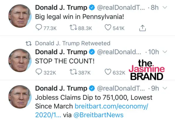 Donald Trump, most active on Twitter throughout the election issuing tweets surrounding his distaste for mail-in ballots, tweeting among other messages: