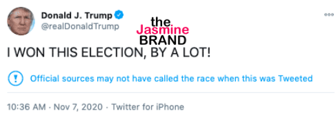 His tweet then prompted Twitter to put a label on his message, saying, “Official sources may not have called the race when this was Tweeted”. In a string of tweets, Donald Trump continued to question the integrity of the voting process. In one tweet he writes in all caps,