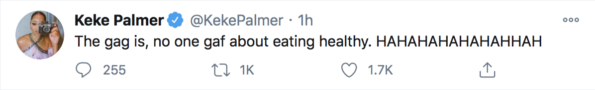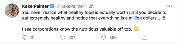 Keke Palmer first sent out a tweet stating that the government is aware of the value that super healthy foods have for your body. She said,
