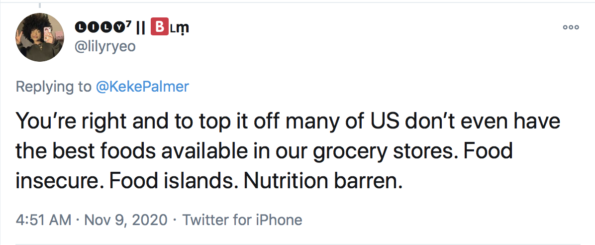 Another fan shared Keke Palmer’s same views on the healthiest foods not being accessible in certain areas.