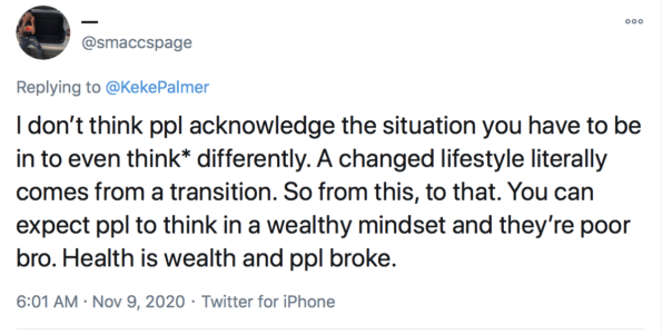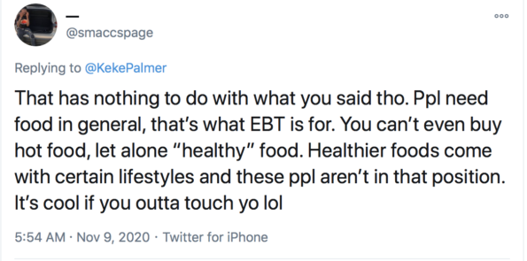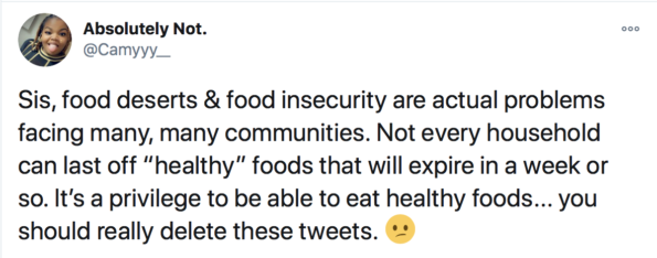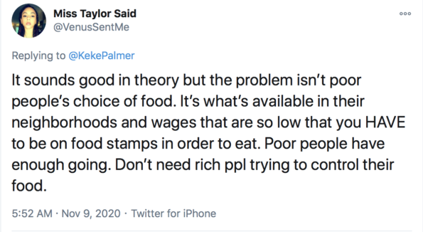 Another fan shared Keke Palmer’s same views on the healthiest foods not being accessible in certain areas.