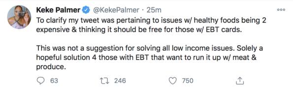 The tweet that seems to have gotten the internet on fire is when Keke Palmer posed a question, imagining if your EBT card could in fact work on all healthy items, even making “healthy food” free. She said: