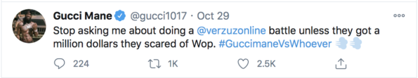 Gucci Mane took to Twitter last month saying he wouldn’t do a VERZUZ unless $1 million dollars was on the table.