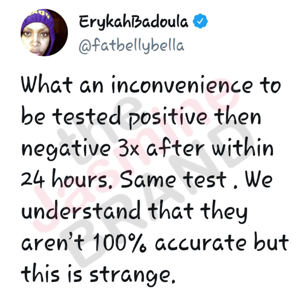 “What an inconvenience to be tested positive than negative 3x after within 24 hours. Same test. We understand that they aren’t 100% accurate but this is strange.”