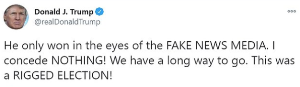 ‘He only won in the eyes of the FAKE NEWS MEDIA. I concede NOTHING!’