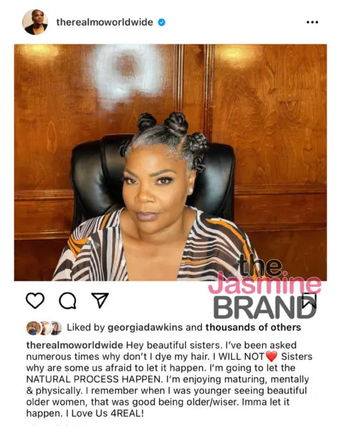 Her message was received with positive comments from fans. Many agreeing and sharing that they too have embraced their gray hair while others shared that Mo’Nique is inspiring them.