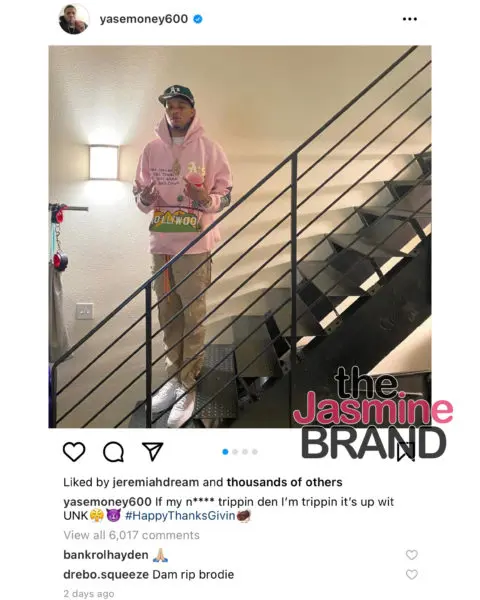 “If my n**** trippin den I’m trippin it’s up wit UNK #HappyThankGivin “