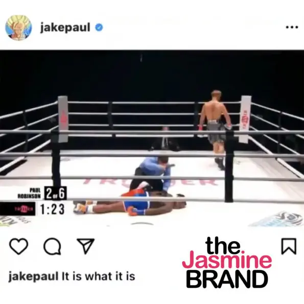 After the fight, Jake Paul also posted his own message on Instagram under a picture of Robinson on the ground after his knockout with the caption: