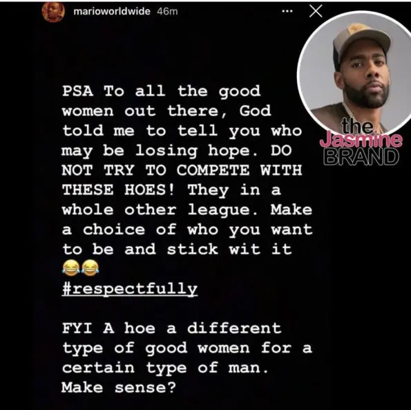R&B singer Mario has a message for the ladies and he’s not holding back. The 34-year-old singer took to his Instagram story to share a message for all the ‘good women’ out there. He claims this message came from God. Mario wrote,