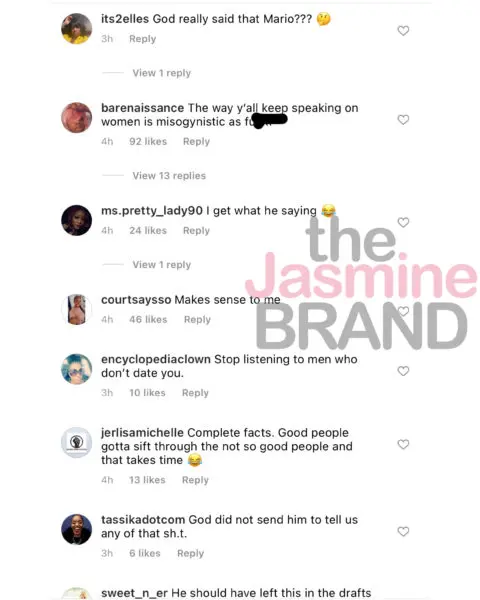 His comments received mixed opinions from fans. Some agreeing with his message while others strongly disagreed. One fan spoke out and said that Mario’s comments felt misogynistic.