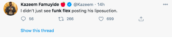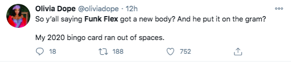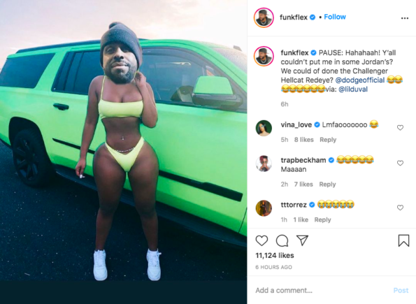 Someone even photoshopped Funkmaster Flex’s body into a green bikini. He shared his reaction to the meme via his Twitter and Instagram pages. He wrote,