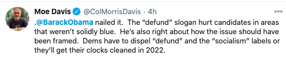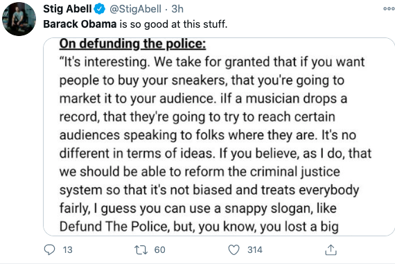 Obama addressed political candidates who use “snappy” slogans such as “defund the police,” when he said,