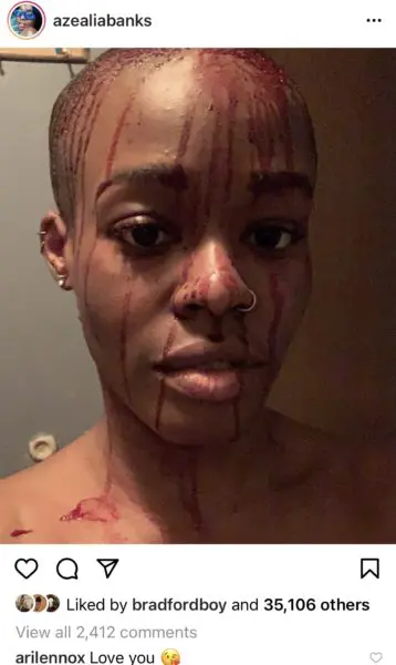 Artist Azealia Banks had a few people questioning her behavior after she posted a picture to her Instagram account Saturday night (December 5th) with a face covered with blood.