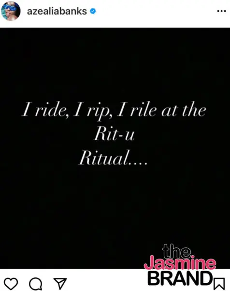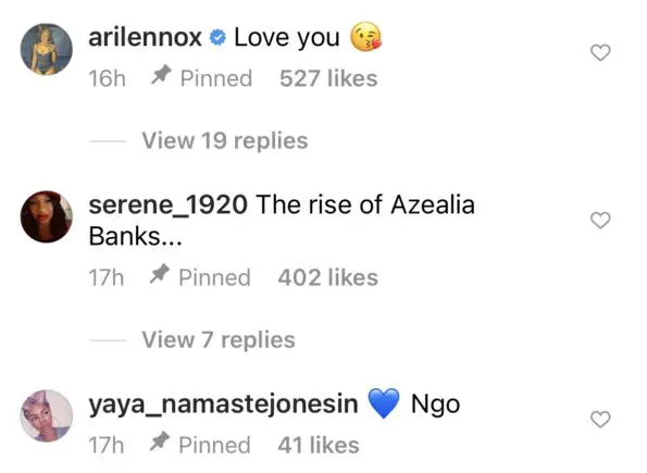 Azealia Banks didn’t post a caption, but she did pin three comments underneath the post, one from R&B singer Ari Lennox that simply read:
