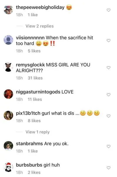 Fans commented underneath asking her a range of questions, checking on her mental well-being to noting that the blood was likely a part of a ritual of sorts.