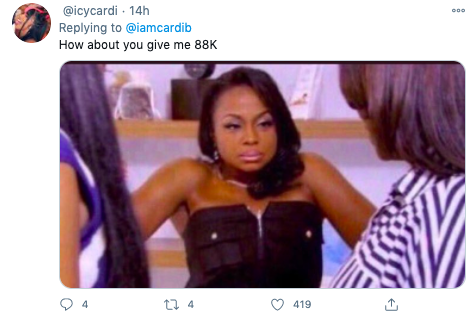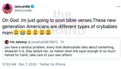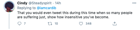 She then responded to one social media user who clarified the issue with Cardi’s initial tweet.