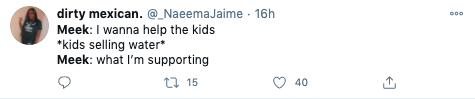Meek mill gave $20.00 only to ten kids selling water and told them to split it like: pic.twitter.com/3J9hl4dQy6