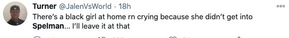 “Transferring to a Historically Black College or University has been my dream for almost two years now. I could never have genuinely imagined I’d be transferring to the #1 HBCU in the country, Spelman College. The home of Black girl magic. I feel beyond grateful for every facet of my journey & for this IMMENSE privilege.”