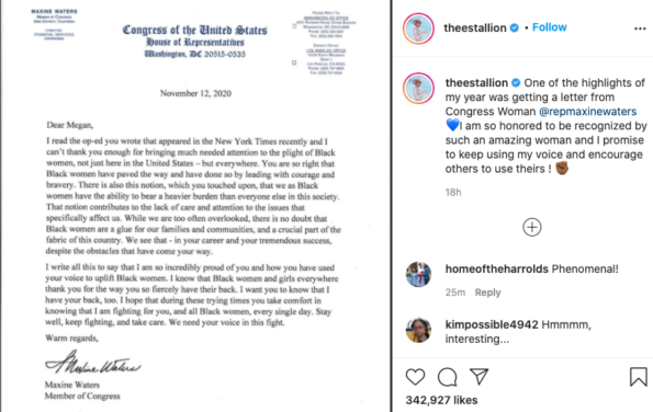 Megan Thee Stallion Gushes Over Letter That Congresswoman Maxine Waters Sent Her