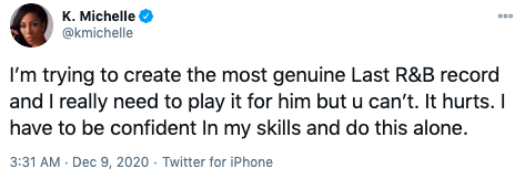 “I’m trying to create the most genuine Last R&B record and I really need to play it for him but u can’t. It hurts. I have to be confident In my skills and do this alone.”