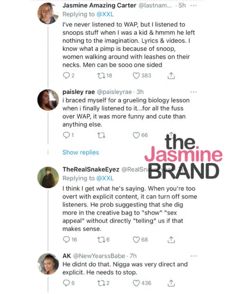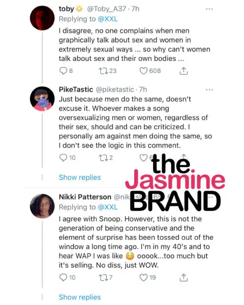 “My daughter is from a different era, though,” Snoop added. “She’s from this era. She may be doing the ‘WAP’ or, you know what I’m saying, a part of the ‘WAP,’ but I can’t be mad at her ’cause it’s her generation, you know what I’m saying? But, at the same time, the things that I would rather see, you know, ’cause I’ma older man.”