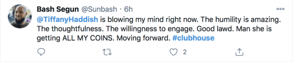 One Clubhouse user tweeted about the conversation,