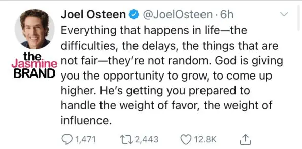 With so much backlash coming his way, Joel Osteen seemingly responded to the backlash on his Twitter account saying,